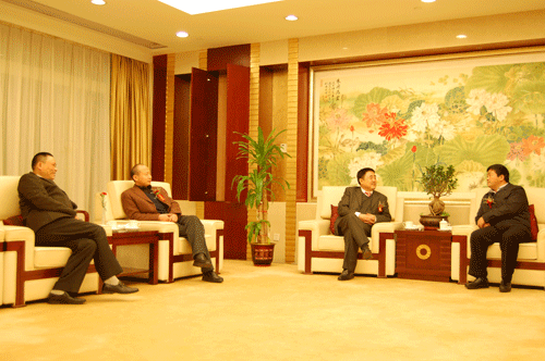 集團(tuán)公司總經(jīng)理、副董事長、黨委副書記趙時(shí)運(yùn)(左二),公司總經(jīng)理、黨委書記李世龍(左一)等參加會(huì)見