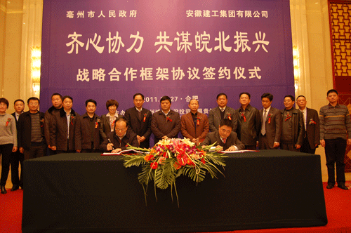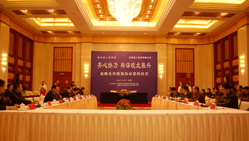 亳州市委書記、市人大主任方春明(右一)和集團(tuán)公司董事長(zhǎng)、黨委書記胡運(yùn)成親切交談