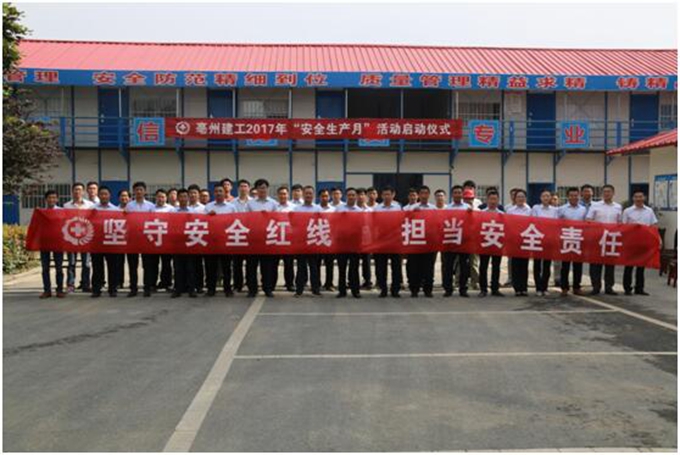 為進(jìn)一步加大安全生產(chǎn)宣傳教育工作力度,推動(dòng)落實(shí)安全生產(chǎn)主體責(zé)任,統(tǒng)籌部署“安全生產(chǎn)月”活動(dòng)相關(guān)工作,提高施工現(xiàn)場(chǎng)全員安全意識(shí),有效防范和遏制生產(chǎn)安全事故發(fā)生,6月1日,亳州建工在創(chuàng)客空間項(xiàng)目舉辦“安全生產(chǎn)月”活動(dòng)啟動(dòng)儀式,亳州建工副總經(jīng)理劉軍、生產(chǎn)總調(diào)度胡志友參加了啟動(dòng)儀式。