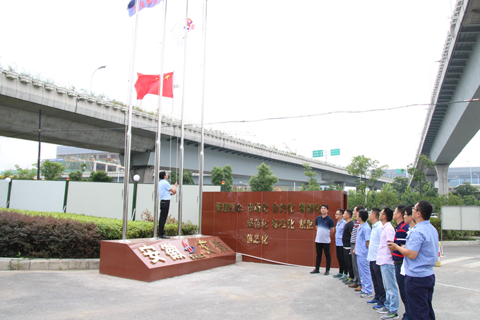 早上七點(diǎn),在項(xiàng)目經(jīng)理帶領(lǐng)下,地鐵支部所有黨員同志集合在旗臺(tái)前,升國旗、唱國歌、溫誓詞。大家迎著初升的朝霞,沐浴在黨的光輝之下。