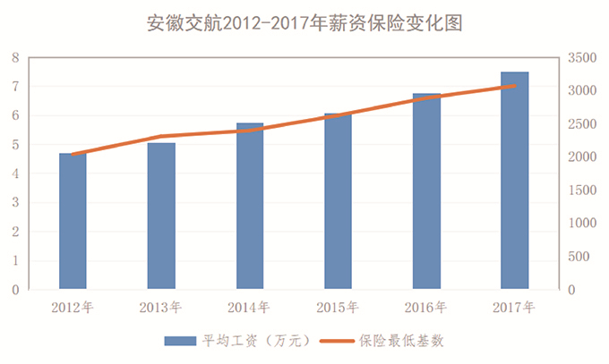 2012年,公司在職職工平均工資不足5萬元,2017年,人均工資上升至近8萬元,增幅達到了59.6%,薪資結(jié)構(gòu)由原來的基本工資與崗位工資的簡單結(jié)合,轉(zhuǎn)變?yōu)榱嘶竟べY、崗位工資、效益考核工資及津補貼,薪資結(jié)構(gòu)更加多元化。