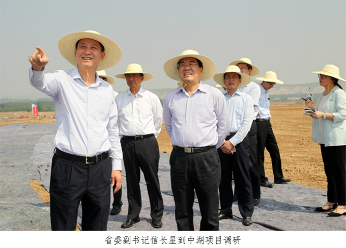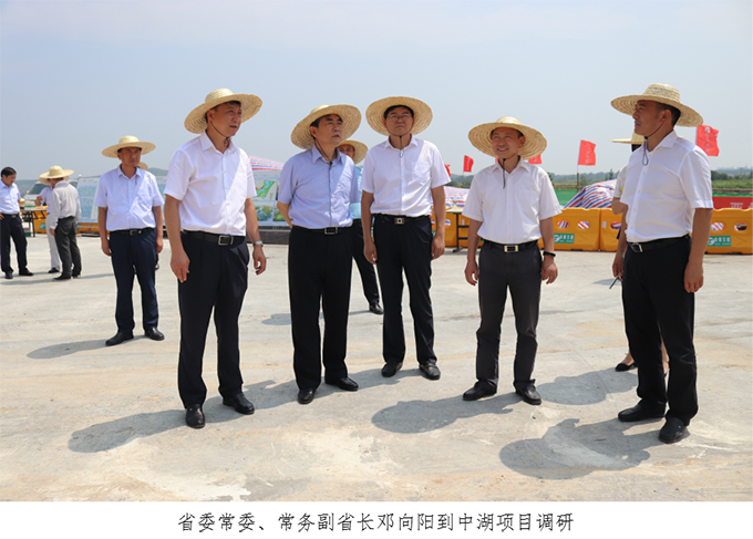 淮北市委市政府高度重視中湖項目,自開工以來,已有來自省委、省人大、省政協(xié)等單位的10余位省部級領(lǐng)導蒞臨現(xiàn)場視察工作。淮北市委書記、市人大常委會主任黃曉武常邀各級領(lǐng)導登上中湖一期1#湖心島視察,并親自當起講解員,描繪未來淮北“一帶雙城三青山、六湖九河十八灣”的美好藍圖。