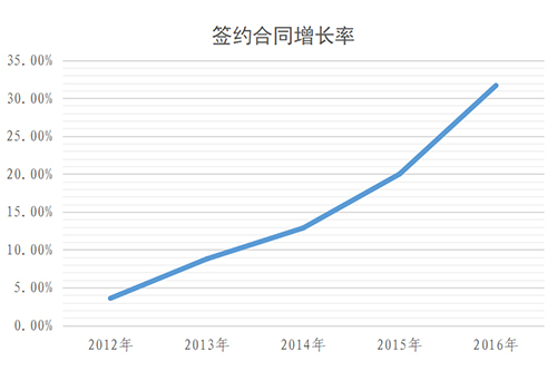 從經(jīng)營指標完成情況來看,五年間(2012~2016年),在集團公司的正確領導下,安徽交航每年都能超額完成集團下達的經(jīng)營任務,新簽合同額逐年遞增,增長率呈上升趨勢,發(fā)展態(tài)勢良好。
