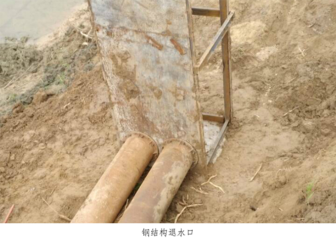 鋼結(jié)構(gòu)退水口。傳統(tǒng)拋泥區(qū)退水口為磚結(jié)構(gòu),通過涵管排水,這種方式不僅成本高,而且涵管銜接處會有滲水的風(fēng)險(xiǎn)。在本項(xiàng)目中,我部工程人員提出設(shè)想將退水口設(shè)計(jì)成鋼結(jié)構(gòu),并在實(shí)際工程中試驗(yàn)成功。鋼結(jié)構(gòu)的退水口不僅可以規(guī)避滲水的風(fēng)險(xiǎn),由于鋼結(jié)構(gòu)可以重復(fù)使用,所以大大降低了成本同時也達(dá)到了環(huán)保的效果。