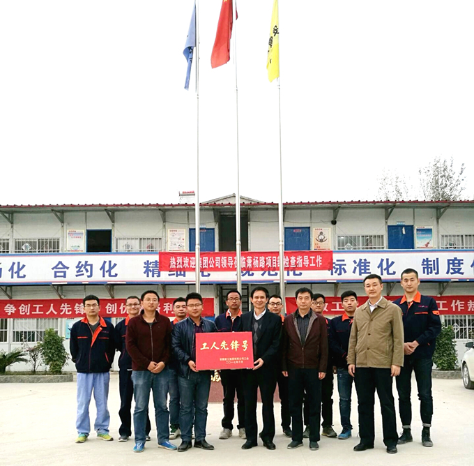 2017年11月1日下午,安徽建工集團(tuán)工會(huì)副主席吳曉伍,安徽安裝公司紀(jì)委書(shū)記、工會(huì)主席李寬旭一行對(duì)安徽交航公司蕭楊路項(xiàng)目“工人先鋒號(hào)”創(chuàng)建工作考核驗(yàn)評(píng)并授牌。安徽交航公司紀(jì)委書(shū)記、工會(huì)主席李楊陪同檢查。