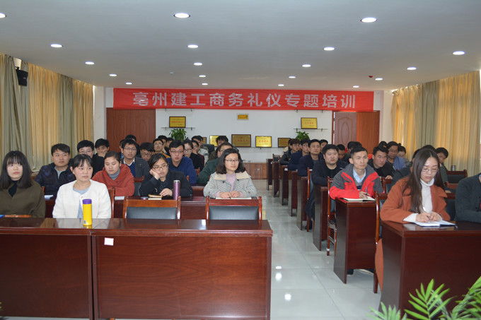 為培養(yǎng)員工良好的禮貌禮儀、行為規(guī)范,提高服務(wù)意識,塑造良好的個人形象及企業(yè)形象,3月23日下午,亳州建工特邀亳州學(xué)院中文系王虹講師對公司本部全體員工、各項目部部分員工及新入職員工進(jìn)行了商務(wù)禮儀專題培訓(xùn)。