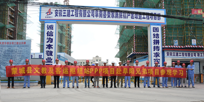 2018年7月10日,在公司第二工程分公司副經(jīng)理王菲及蒙城PPP項目經(jīng)理李道生的帶領下,蒙城PPP項目組織開展“走出去、學回來”系列活動,赴阜陽兄弟項目參觀學習。