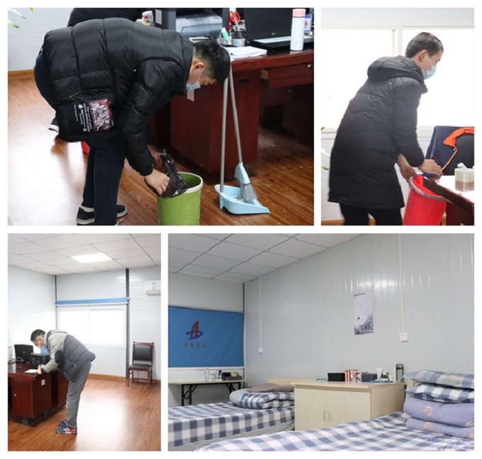 在大掃除活動(dòng)中,大家卷起袖子消毒、拖地、擦窗、疊被子.....,忙得不亦樂乎,打掃后,每個(gè)辦公室和宿舍都煥然一新。通過此次活動(dòng)的開展,為項(xiàng)目部營(yíng)造了干凈衛(wèi)生的辦公生活環(huán)境,并使項(xiàng)目員工正確認(rèn)識(shí)到個(gè)人衛(wèi)生的重要性,引導(dǎo)項(xiàng)目員工規(guī)范防控行為,做好個(gè)人防護(hù)衛(wèi)生,營(yíng)造了良好的防疫衛(wèi)生氛圍。