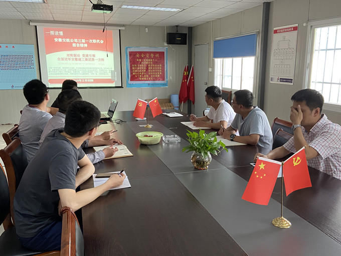 5月22日上午11:30,黃山龍駿家園項目部組織全體職工貫徹學習安徽交航公司三屆一次職代會精神,會上認真?zhèn)鬟_學習了公司黨委副書記、總經(jīng)理方申柱作的題為《雙輪驅(qū)動、黨建引領,全面進軍集團第一方陣》的工作報告。
