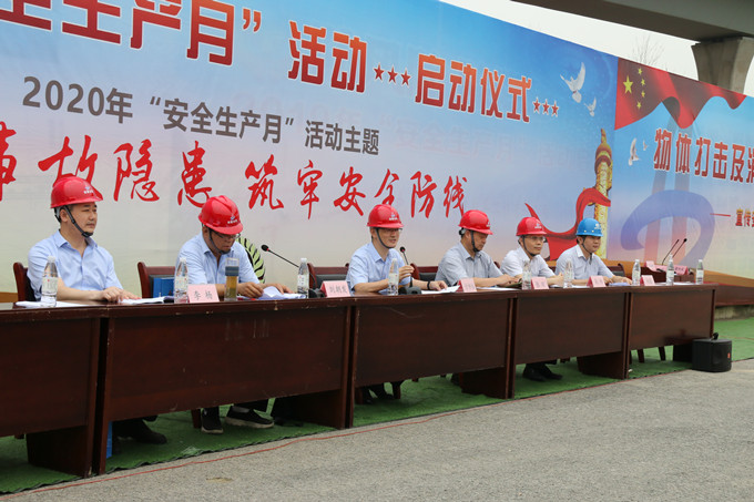 今年6月是全國(guó)第19個(gè)“安全生產(chǎn)月”,按照國(guó)家應(yīng)急管理部和安徽建工集團(tuán)統(tǒng)一部署,安徽交航在全公司范圍內(nèi)開(kāi)展了2020年“安全生產(chǎn)月”活動(dòng)。6月1日,安徽交航公司聯(lián)合軌道TJ-03標(biāo)項(xiàng)目部在項(xiàng)目現(xiàn)場(chǎng)開(kāi)展以“消除事故隱患、筑牢安全防線(xiàn)”為主題的安全月暨宣誓啟動(dòng)儀式,公司黨委副書(shū)記、總經(jīng)理、安委會(huì)主任方申柱出席儀式,公司有關(guān)領(lǐng)導(dǎo)、機(jī)關(guān)相關(guān)部門(mén)負(fù)責(zé)人、軌道項(xiàng)目部全體人員以及所屬各項(xiàng)目安全員參加儀式。公司副總經(jīng)理、安委會(huì)副主任劉朝發(fā)主持啟動(dòng)儀式。