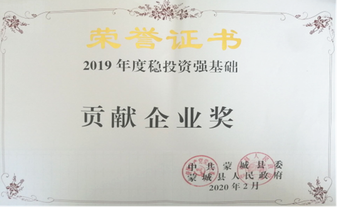 近日,蒙城縣委、縣政府印發(fā)《關(guān)于2019年度全縣綜合考評(píng)結(jié)果的通報(bào)》,根據(jù)蒙城縣委、縣政府綜合考核評(píng)比,安徽交航公司榮獲“2019年度穩(wěn)投資強(qiáng)基礎(chǔ)貢獻(xiàn)企業(yè)獎(jiǎng)”。