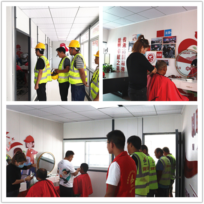 活動(dòng)現(xiàn)場(chǎng),民工兄弟們井然有序的排隊(duì)等待,項(xiàng)目支部“黨員先鋒崗”的黨員志愿者全程維護(hù)現(xiàn)場(chǎng)秩序。理發(fā)師動(dòng)作嫻熟地轉(zhuǎn)動(dòng)手中的工具,專(zhuān)心為民工兄弟們理發(fā),伴隨著剪刀“咔嚓”的聲音,大家原本凌亂的頭發(fā)變得干凈利落??粗R中煥然一新的發(fā)型,民工兄弟們一個(gè)勁兒地向志愿者說(shuō)“謝謝”。