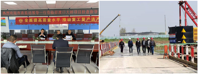 4月8日上午,亳州市交通基本建設(shè)工程質(zhì)量監(jiān)督局馬洪剛一行到西淝河邵渡口大橋項(xiàng)目開展安全生產(chǎn)隱患排查工作。三公司經(jīng)理潘家奎、項(xiàng)目執(zhí)行經(jīng)理張功印及監(jiān)理單位代表等參加檢查。