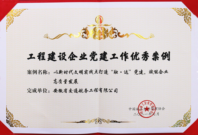 日前,全國工程建設(shè)行業(yè)黨建案例評選結(jié)果公布,安徽交航黨建案例《以新時代文明實踐點打造“融達(dá)”黨建,賦能高質(zhì)量發(fā)展》被評為“全國工程建設(shè)企業(yè)黨建工作優(yōu)秀案例”。