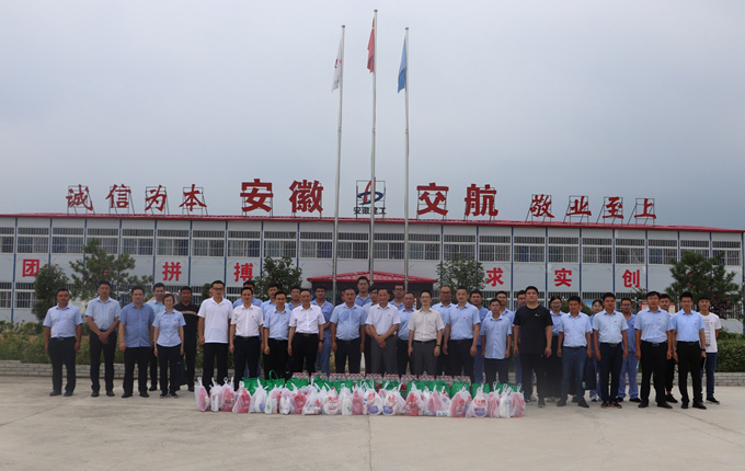 隨后,牛曙東一行深入利辛縣西淝河邵渡口大橋項(xiàng)目現(xiàn)場實(shí)地查看項(xiàng)目建設(shè)情況,看望慰問奮戰(zhàn)在施工現(xiàn)場一線的項(xiàng)目管理人員,并現(xiàn)場親自發(fā)放了防暑降溫物品,囑咐他們要注意高溫期間的安全生產(chǎn)和防暑降溫工作。在項(xiàng)目部會議室座談交流中,牛曙東聽取了公司黨委書記、董事長方申柱匯報的安徽交航目前經(jīng)濟(jì)指標(biāo)完成、“1133”發(fā)展目標(biāo)、“54321”發(fā)展戰(zhàn)略以及黨建工作等方面情況,并對安徽交航當(dāng)前工作給予了充分肯定。