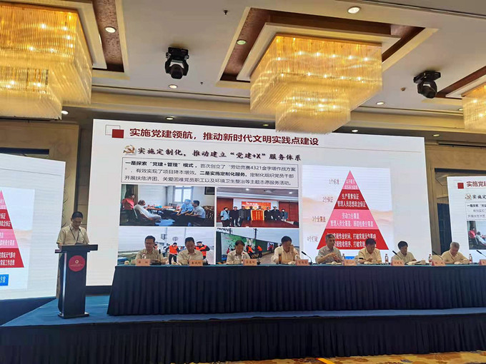會上,方申柱通過PPT形式圖文并茂地介紹了安徽交航項目黨建工作經(jīng)驗做法以及主要工作成效。在談及黨建工作經(jīng)驗做法時,方申柱從兩個大方面進(jìn)行了介紹:一是聚焦一個文明實踐。即以新時代文明實踐點(diǎn)為載體,通過整合四種資源、實施定制化服務(wù)、設(shè)立農(nóng)民工監(jiān)督員,高標(biāo)準(zhǔn)推動提質(zhì)筑安走深走實。二是點(diǎn)亮“三個紅色”。即通過打造“紅色堡壘”、激活“紅色細(xì)胞”、編制“紅色紐帶”,充分基層黨組織的戰(zhàn)斗堡壘作用。