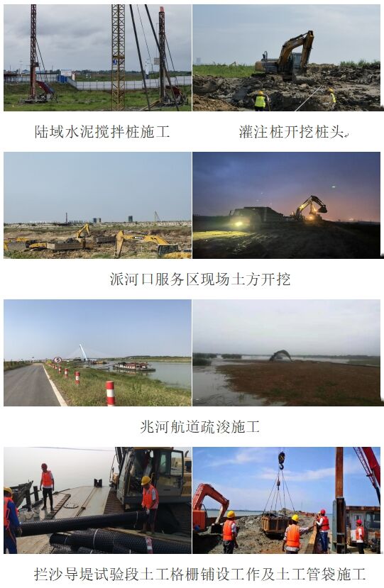 目前,引江濟(jì)淮項目派河口服務(wù)區(qū)按照計劃已完成多項工作,派河航道疏浚工作也已于9月7日正式開始,目前正在有序推進(jìn)。兆河航道疏浚土方開挖已完成110萬方,兆河航道攔沙導(dǎo)堤試驗段已完成土工格柵鋪設(shè)工作并完成土工管袋施工1000方。本年度,項目累計完成產(chǎn)值約8000萬元。接下來,項目黨支部將繼續(xù)聚焦進(jìn)度,充分發(fā)揮黨建引領(lǐng)作用,持續(xù)助推公司高質(zhì)量發(fā)展。