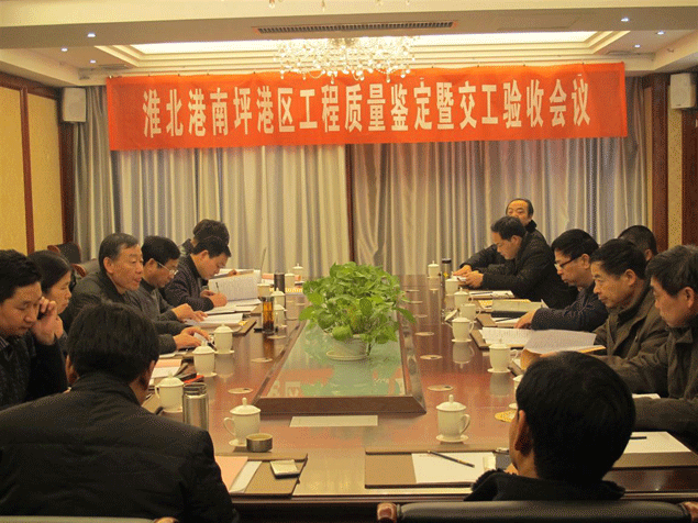 2013年12月31日,由交航公司承建的淮北港南坪港區(qū)工程交工質(zhì)量鑒定會議在淮北召開,會議有安徽省交通質(zhì)監(jiān)局組織主持;安徽省交通質(zhì)監(jiān)局副局長馬中南、水管處處長周基群,安徽港投集團副總王燦、總助高勝,項目辦主任汪能文,交航公司副總侯力、工程部經(jīng)理李立柱及請聘專家等參加了會議。