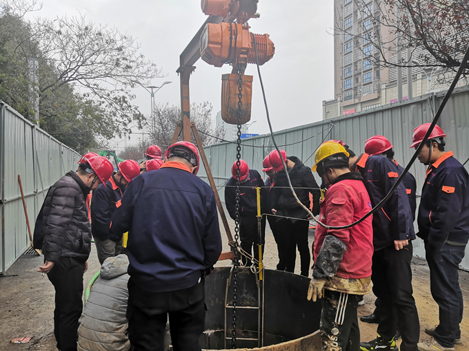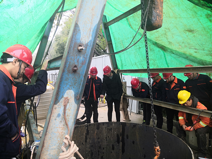 參觀學(xué)習(xí)中,雨污分流項目有關(guān)人員介紹了項目施工過程中的經(jīng)驗,并與滁州項目人員就頂管工藝施工等工作進行了深入探討。蔚來會、陳浩通過實地講解頂進設(shè)備安裝、掘進機井內(nèi)就位穿墻等工序,讓滁州項目人員進一步了解了頂管工藝的施工流程。