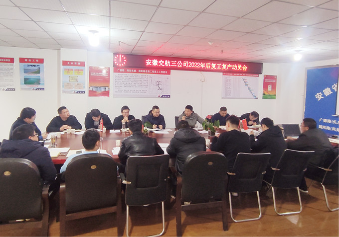 2月11日下午,三公司2022年復(fù)工復(fù)產(chǎn)工作動員會在肥召開。會議強調(diào),要以“開局就是決戰(zhàn),起步就要沖刺”的昂揚姿態(tài),下好先手棋、打好主動仗,以敢于擔(dān)當(dāng)?shù)挠職狻⑶笳鎰?wù)實的行動,高效推進(jìn)復(fù)工復(fù)產(chǎn),為全年各項工作任務(wù)完成奠定堅實基礎(chǔ)。分公司班子成員、各項目負(fù)責(zé)人、項目總工及部分項目職工代表參加會議。分公司黨支部書記、總經(jīng)理潘家奎主持會議。