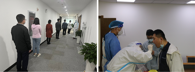圖為公司機關(guān)防疫工作組聯(lián)系核酸檢測機構(gòu)對全員進行核酸檢測。