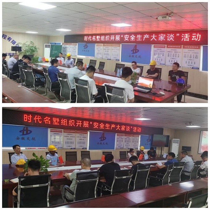 今年6月是第21個(gè)全國“安全生產(chǎn)月”。為了宣傳貫徹“安全生產(chǎn)月”活動、交流安全管理工作方法和經(jīng)驗(yàn),6月10日,滁州時(shí)代名墅項(xiàng)目部組織開展“安全生產(chǎn)大家談”活動。項(xiàng)目部全體管理人員、分包單位項(xiàng)目負(fù)責(zé)人及各勞務(wù)班組長參加活動。