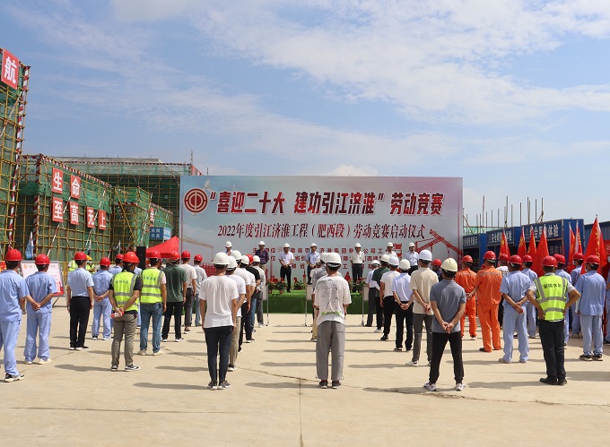 7月7日上午,由安徽省引江濟(jì)淮集團(tuán)有限公司工會(huì)主辦,省引江濟(jì)淮集團(tuán)肥西建管處、安徽省交通航務(wù)工程有限公司承辦的“喜迎二十大 建功引江濟(jì)淮”2022年引江濟(jì)淮工程(肥西段)勞動(dòng)競賽啟動(dòng)儀式在我公司引江濟(jì)淮工程派河口服務(wù)區(qū)項(xiàng)目成功舉行。公司黨委副書記、總經(jīng)理杜海峰出席儀式并致辭。省引江濟(jì)淮集團(tuán)運(yùn)營管理部部長陳敏,肥西建管處處長陳曦、副處長李峰,安徽交航黨委副書記、工會(huì)主席黃國平出席儀式,各參建單位項(xiàng)目代表和一線隊(duì)伍代表參加儀式。肥西建管處副處長宋誠主持儀式。