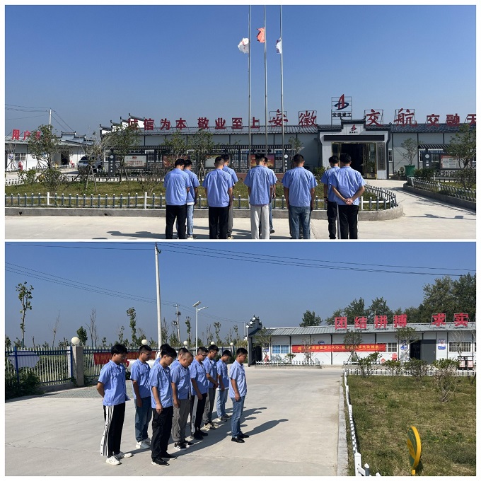 上午9時18分,伴隨著防空警報的響起,利辛港項目部降半旗默哀活動正式開始,全體職工佇立在國旗下,舉行了莊嚴(yán)的默哀儀式,為在抗戰(zhàn)中英勇犧牲的烈士和不幸逝去的同胞默哀三分鐘。