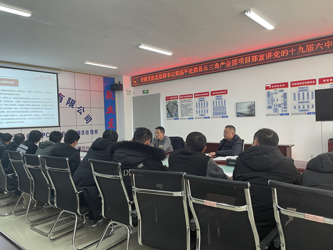 12月30日下午,公司黨委副書(shū)記、工會(huì)主席黃國(guó)平赴泗縣長(zhǎng)三角項(xiàng)目部宣講黨的十九屆六中全會(huì)精神。泗縣長(zhǎng)三角項(xiàng)目全體職工參加會(huì)議。