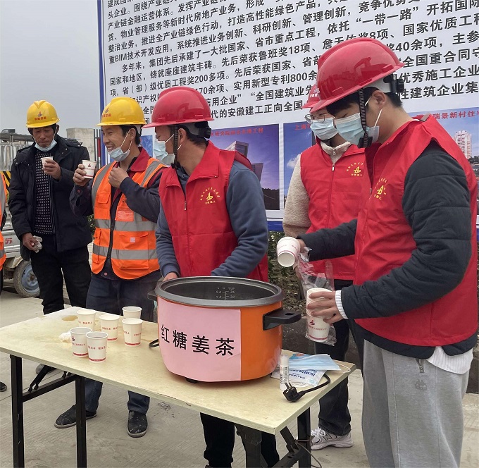 寒冬將至,為了提高現(xiàn)場工人工作積極性,鼓足干勁,全力推進(jìn)施工建設(shè)進(jìn)程。項目志愿者在施工現(xiàn)場為工作人員免費提供紅糖姜茶,將一杯杯熱氣騰騰的姜茶送到施工人員手中,為他們驅(qū)寒送暖,并叮囑他們在工作中注意防寒保暖。