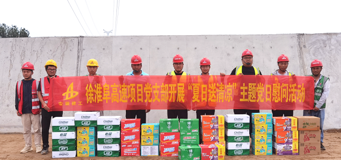 炎炎夏日送清涼,絲絲關(guān)懷沁心田。為傳遞建工交航黨委及工會對基層職工的關(guān)懷,致敬高溫下仍奮戰(zhàn)在高速項目一線的基層建設(shè)者。6月21日下午,在端午節(jié)來臨之際,徐淮阜高速項目黨支部開展“夏日送清涼”主題黨日慰問活動。