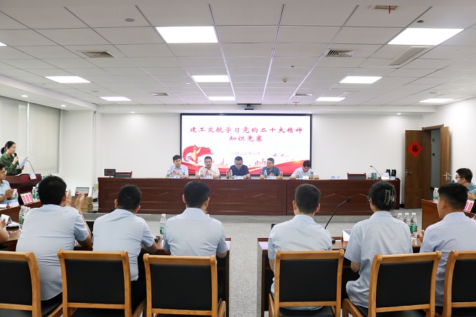 為進一步把學(xué)習(xí)貫徹習(xí)近平新時代中國特色社會主義思想主題教育和黨的二十大精神不斷引向深入,6月17日下午,建工交航舉辦學(xué)習(xí)黨的二十大精神知識競賽。公司紀委書記楊松、黨委工作部負責人及機關(guān)三個支部書記擔任評委。