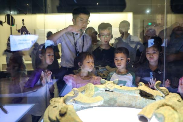 飯后,“小候鳥”們熱情不減,快樂奔赴安徽省博物院(新館)參觀,緊緊跟隨者講解員的步伐,遨游在古皖大地的歷史長河之中。商周青銅器、漢代畫像石、古代陶瓷器等一件件歷史文物、一幀幀歷史畫卷,訴說著過往的輝煌與滄桑,且館內(nèi)采用高科技多媒體與游客互動,陳列的巖石標本、古生物化石令人感到震撼,充分激發(fā)了小朋友熱愛家鄉(xiāng)、探索科學的熱情。