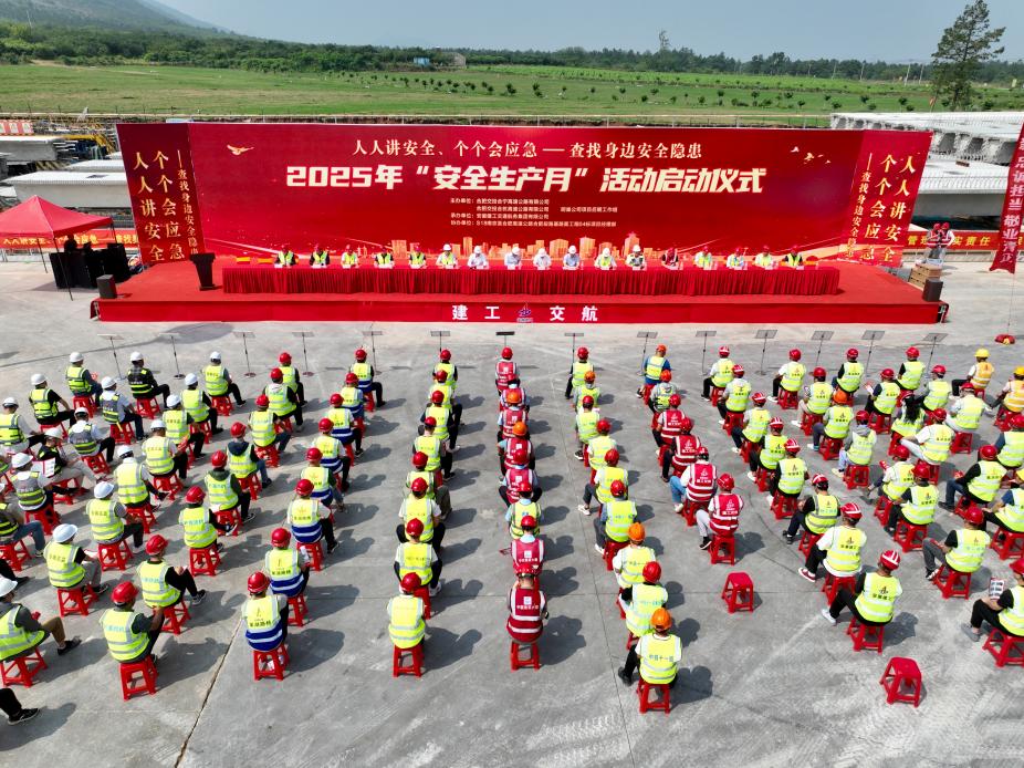 為深入貫徹習(xí)近平總書記關(guān)于安全生產(chǎn)的重要論述,扎實(shí)推動(dòng)“人人講安全、個(gè)個(gè)會(huì)應(yīng)急—查找身邊安全隱患”主題活動(dòng)落地見效,6月3日上午,合寧公司2025年“安全生產(chǎn)月”啟動(dòng)儀式在建工交航S18寧合高速04標(biāo)舉行。