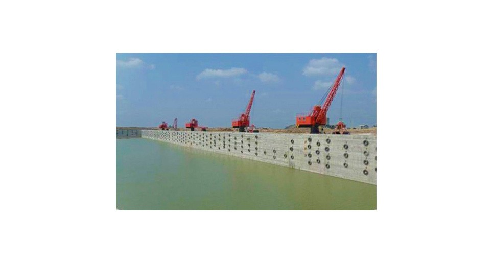該工程設(shè) 17 個 500t 級重力式碼頭泊位,其 中散貨碼頭 10 個、件雜貨碼頭 7 個,年吞吐量 為 8000000t,為千里淮河第一港。